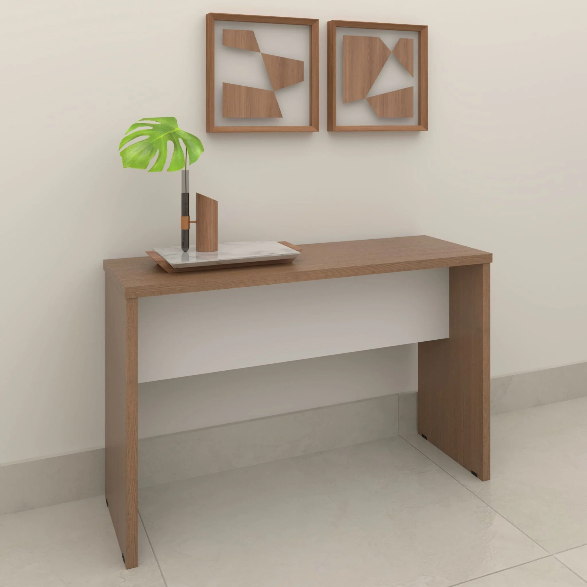 Em MDF Carvalho Avelã medindo 120x40x80cm com travessa branco tx, estrutura em 30mm.