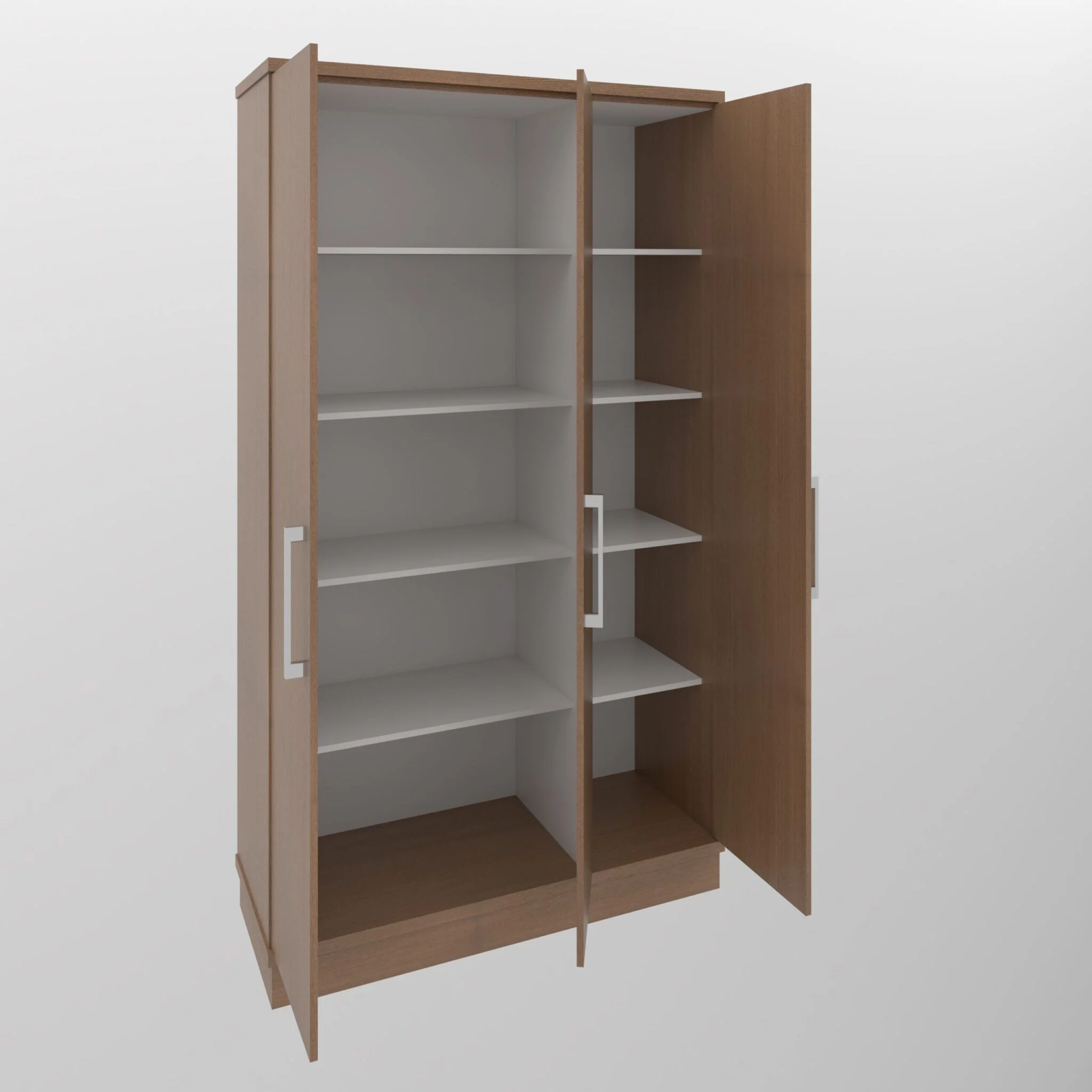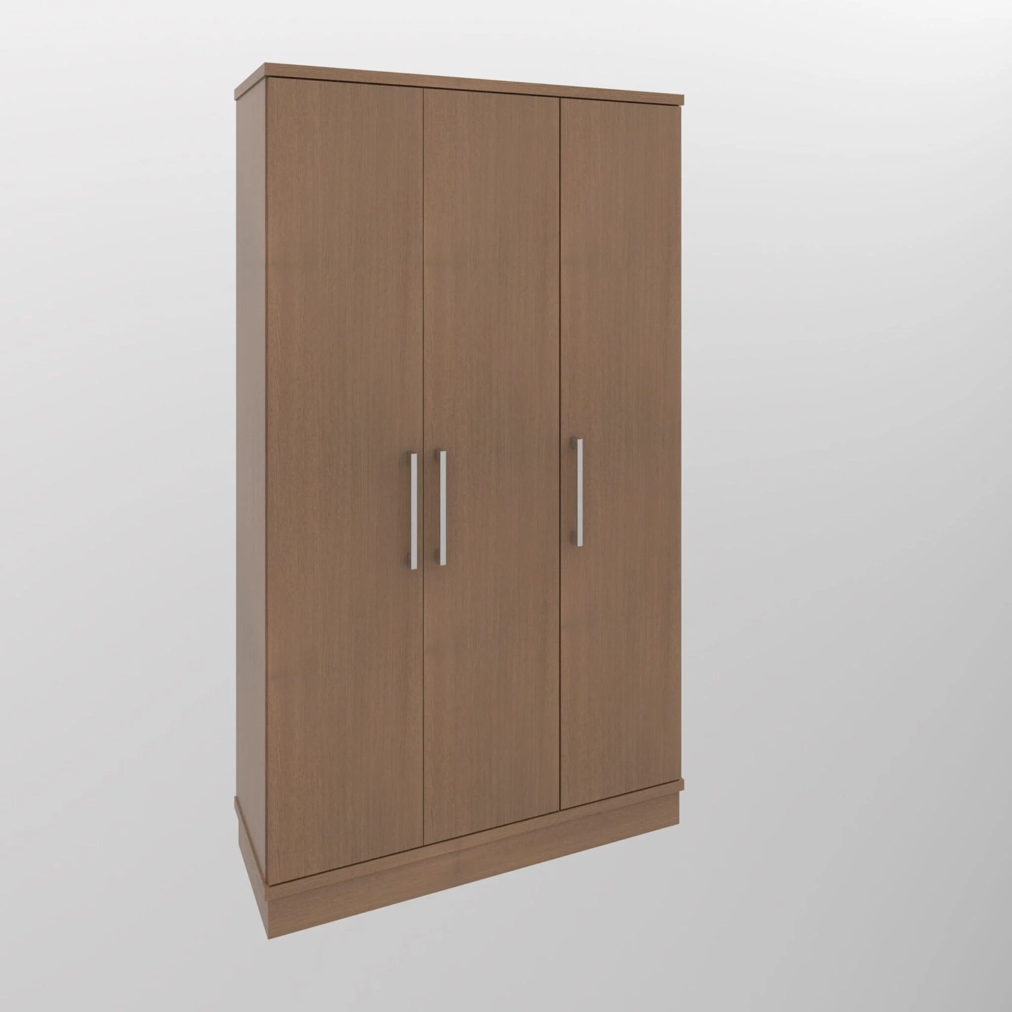 Em MDF Carvalho Avelã 15mm, medindo 140x50x210cm, com tres portas pxador metal cromado, tampo e fundo 30mm engrossado, prateleiras internas em MDF Branco, rodapé estruturado.
