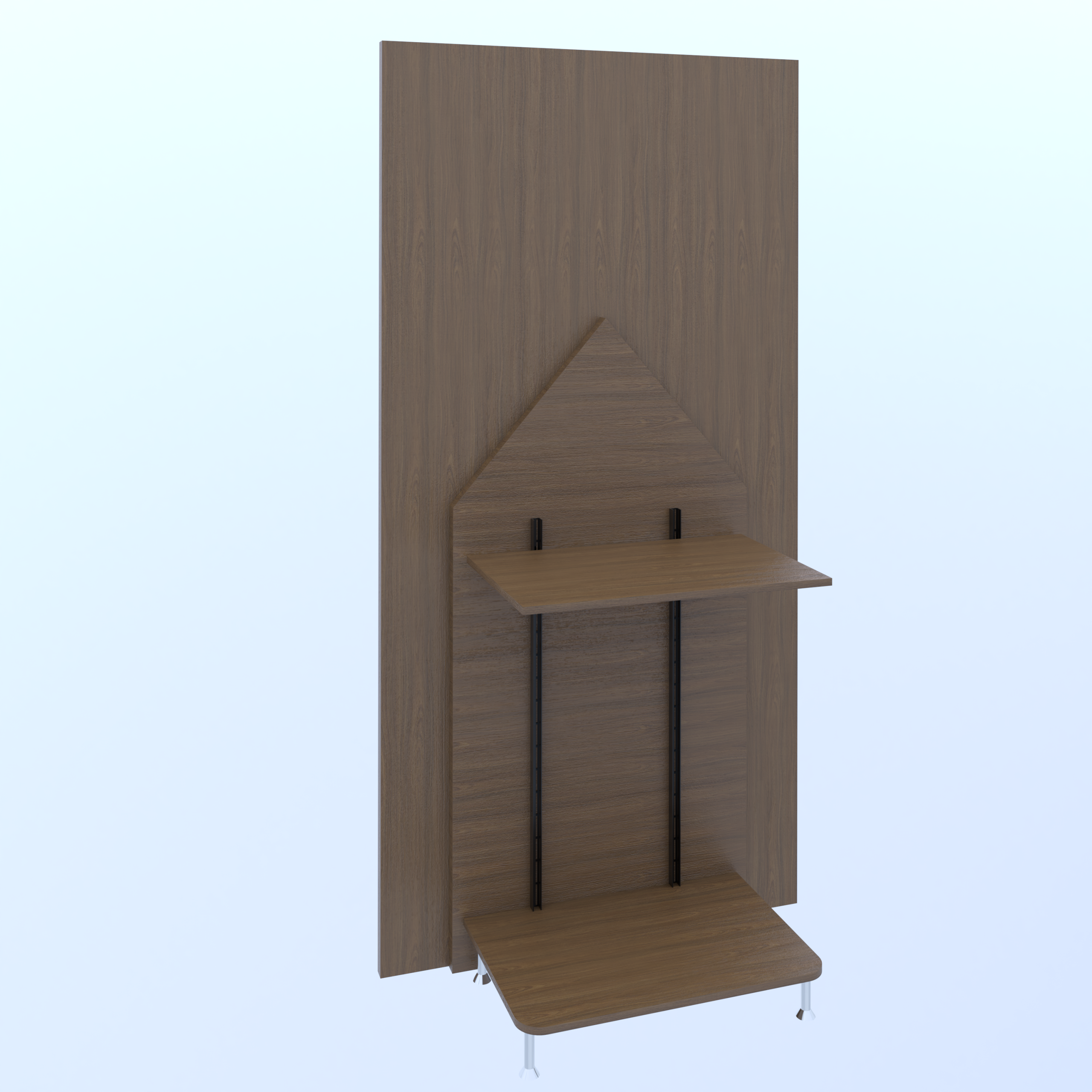 Acabamento em MDF Madeirado, medindo 100×200 cm e base com pés metálicos de 10 cm.